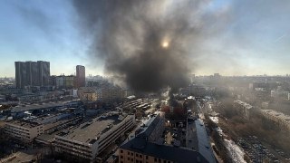 Мусорка загорелась неподалеку от платформы «Останкино» (Бутырский район нашего СВАО). И вот такая дымовуха в итоге.