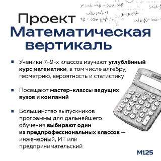 Ученики 7-9 классов, которые хотят связать свою профессию с математикой — могут участвовать в проекте, который создан специально для углубленного изучения этого предмета. Мэр сказал, что сегодня в классах математической вертикали учатся свыше 52 тысяч ребят. Подробнее о проекте на картинке.