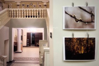 В ДК сохраняется та самая атмосфера дома культуры со всеми его мероприятиями. Теперь там вот так вывесили снимки — это выставка фотографа Олега Усова, посвящённая весне. Будете гулять поблизости — можно заглянуть, посмотреть его работы.