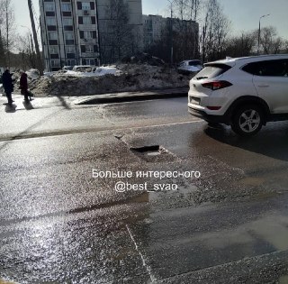 Вот такая яма в Отрадном около остановки «Улица Бестужевых».